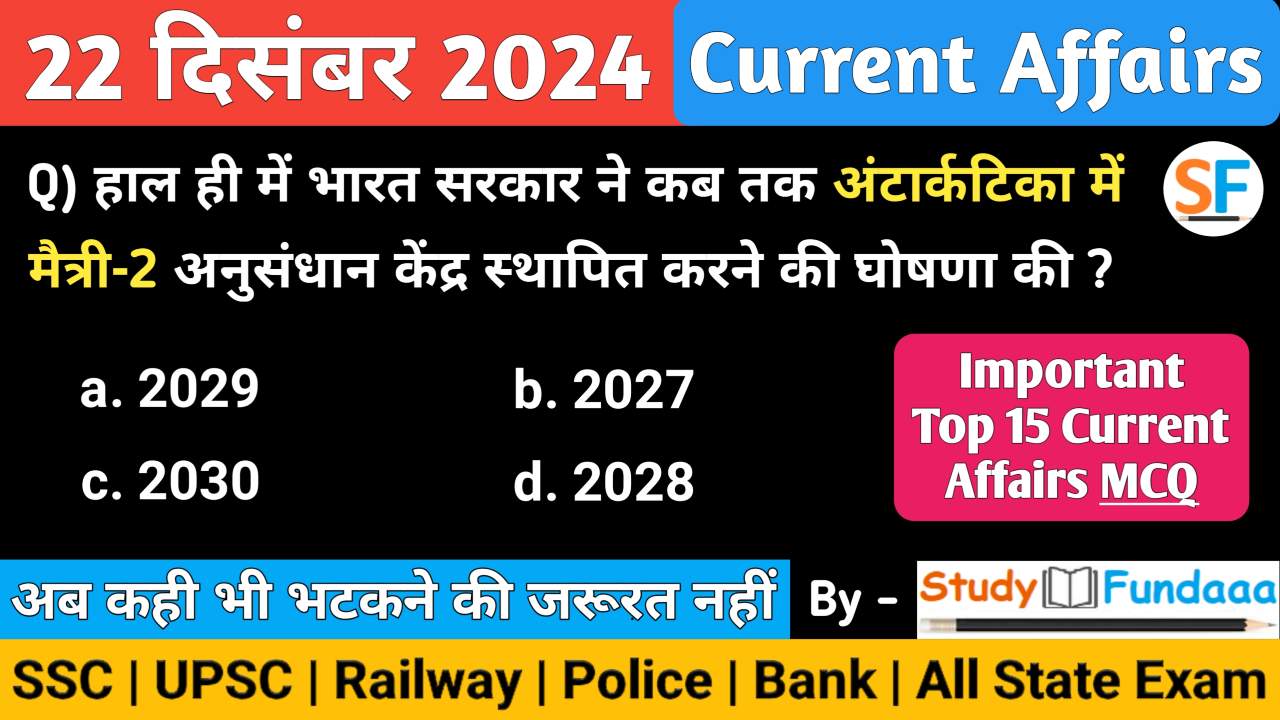 22 December 2024 Current Affairs Mcq | 22 दिसंबर 2024 करंट अफेयर्स
